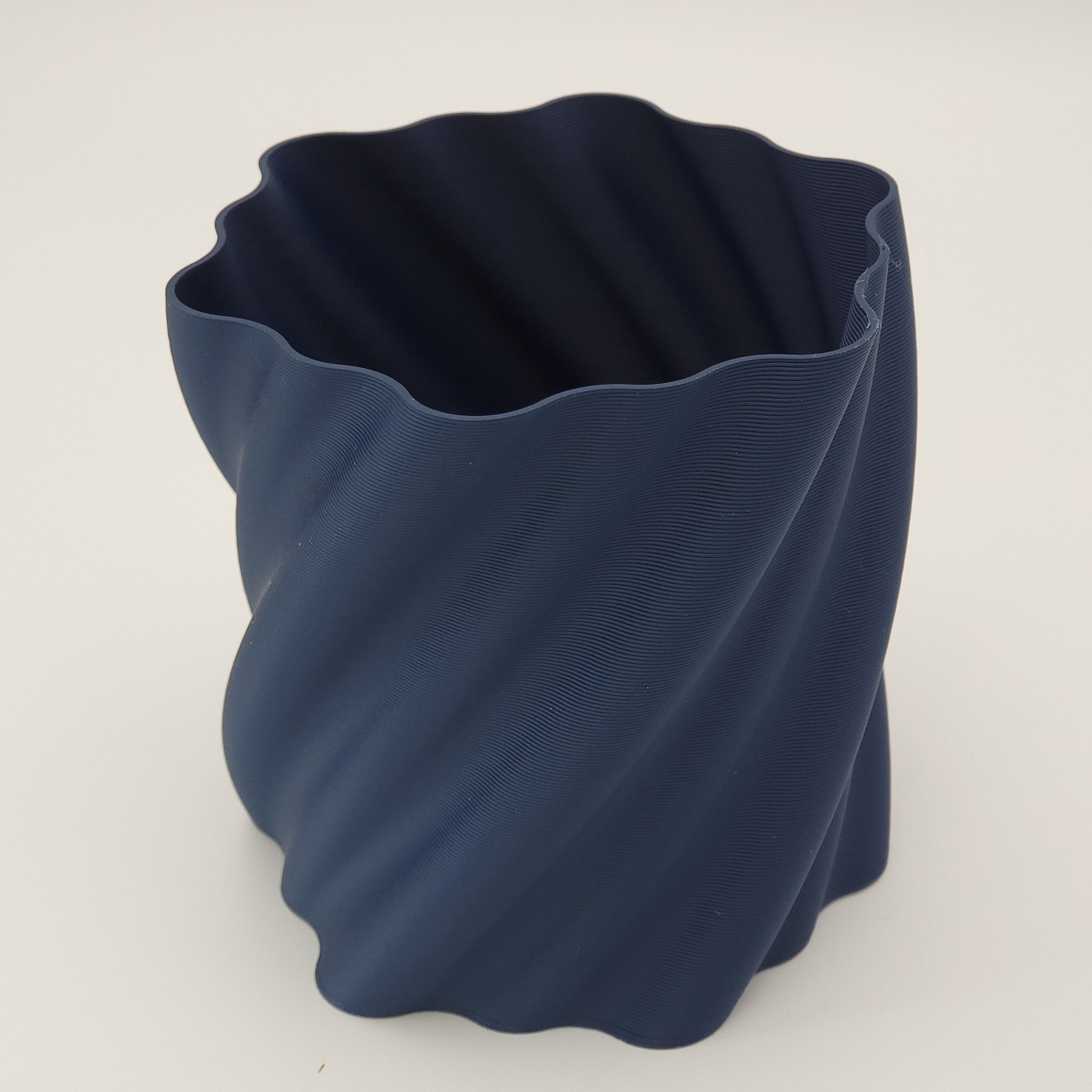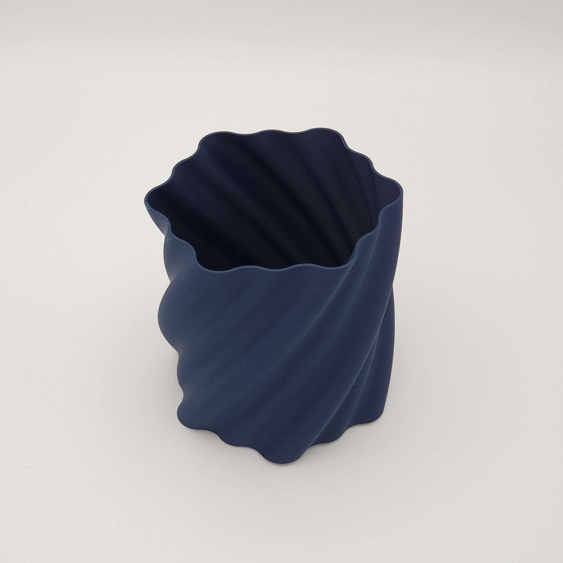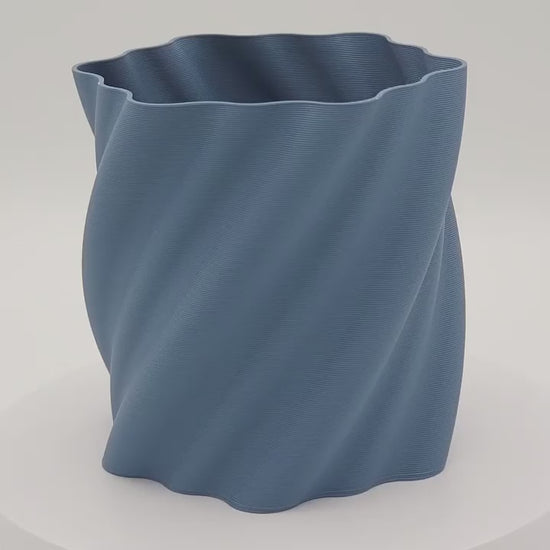 Ce pot à crayons est constitué d'une seule partie de couleur bleu marine, bleu gris ou bleu glacier.